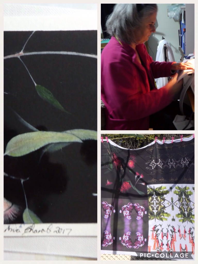 Preparing material and then sewing wearable art pieces.