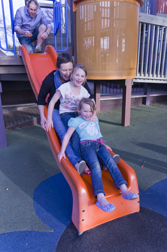 Family enjoying facilities at Bendigos Lake Weeroona. Bendigo is known for its child friendly attitude which is evident at the main lake in the city, Lake Weeroona, with a great, well fenced playground and walking boardwalk area, lawn and plenty of wildlife to see.