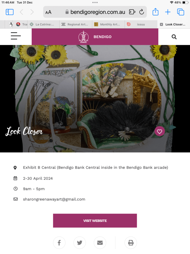 Another is a joint exhibition with Poet/mixed media artist Tru Dowling and will be in Kyneton.
