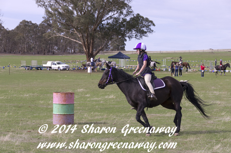 RHEOLA CHARITY CARNIVAL 144TH EASTER MONDAY APRIL 21ST 2014. Jazz and Maggie compete in the Barrell Race for 8 to 13 year olds.